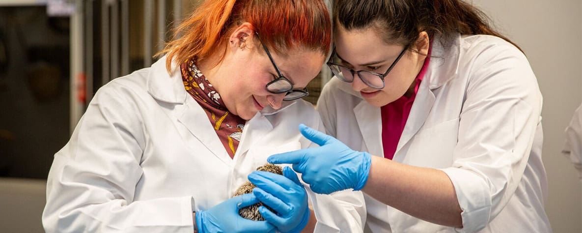 During the practical sessions, you’ll work with animals in our well-stocked Animal Care Centre at Usk campus, which houses a range of animals from ferrets and degus, to snakes and spiders.